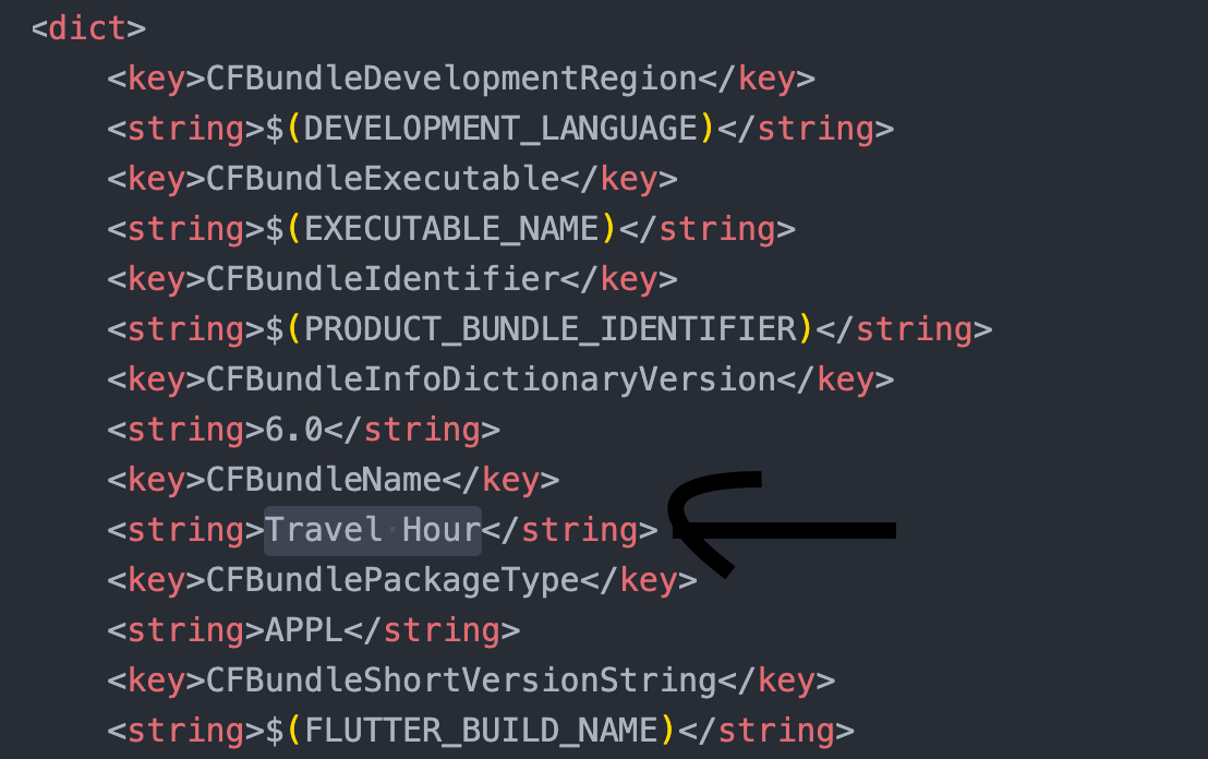 Go to the **i​os/Runner/Info.plist​** file and Change your app name.
